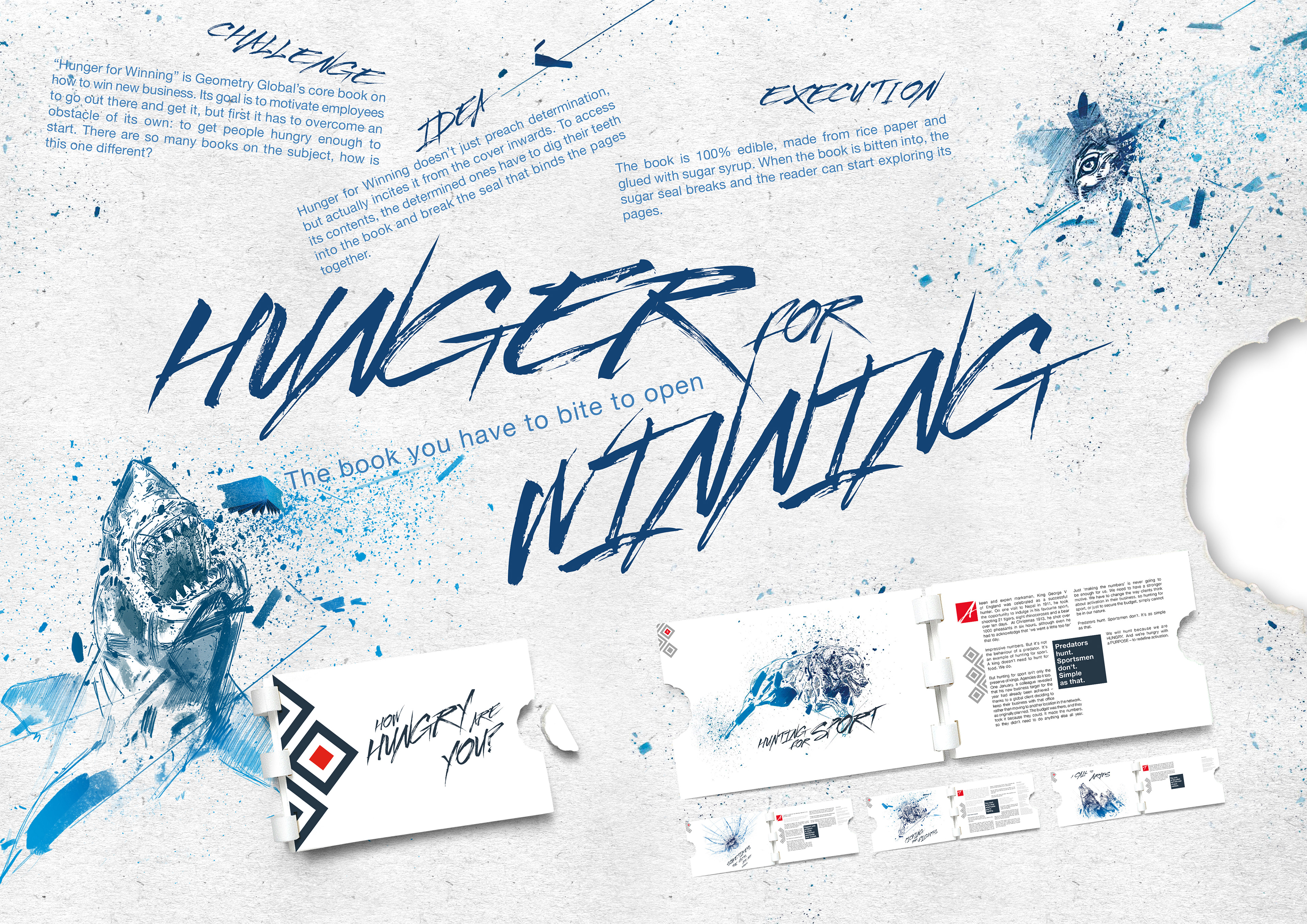 To demonstrate Geometry Global's ravenous appetite for new business and share it with our employees worldwide, we produced a book which you had to bite to open, and could be eaten whole.