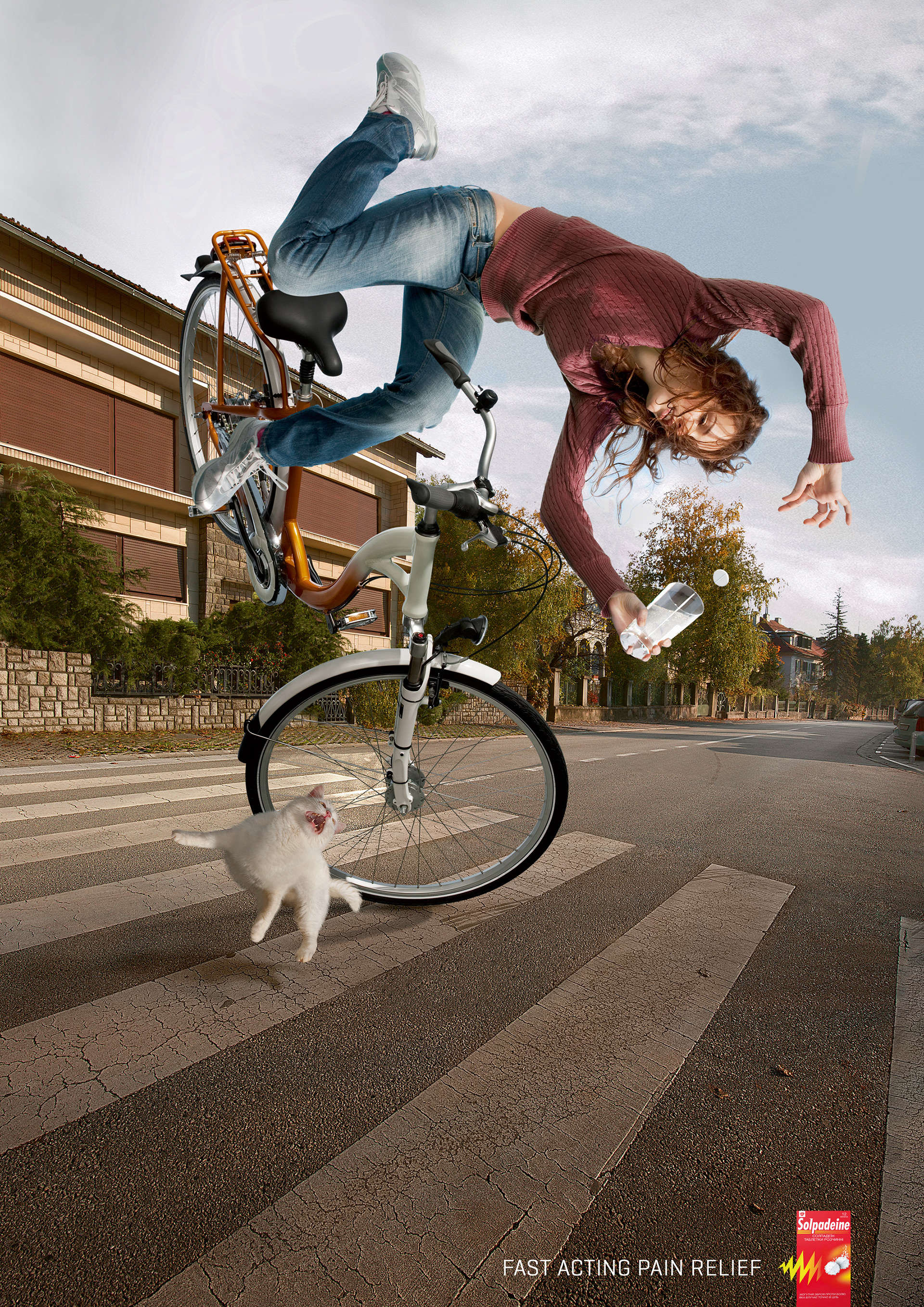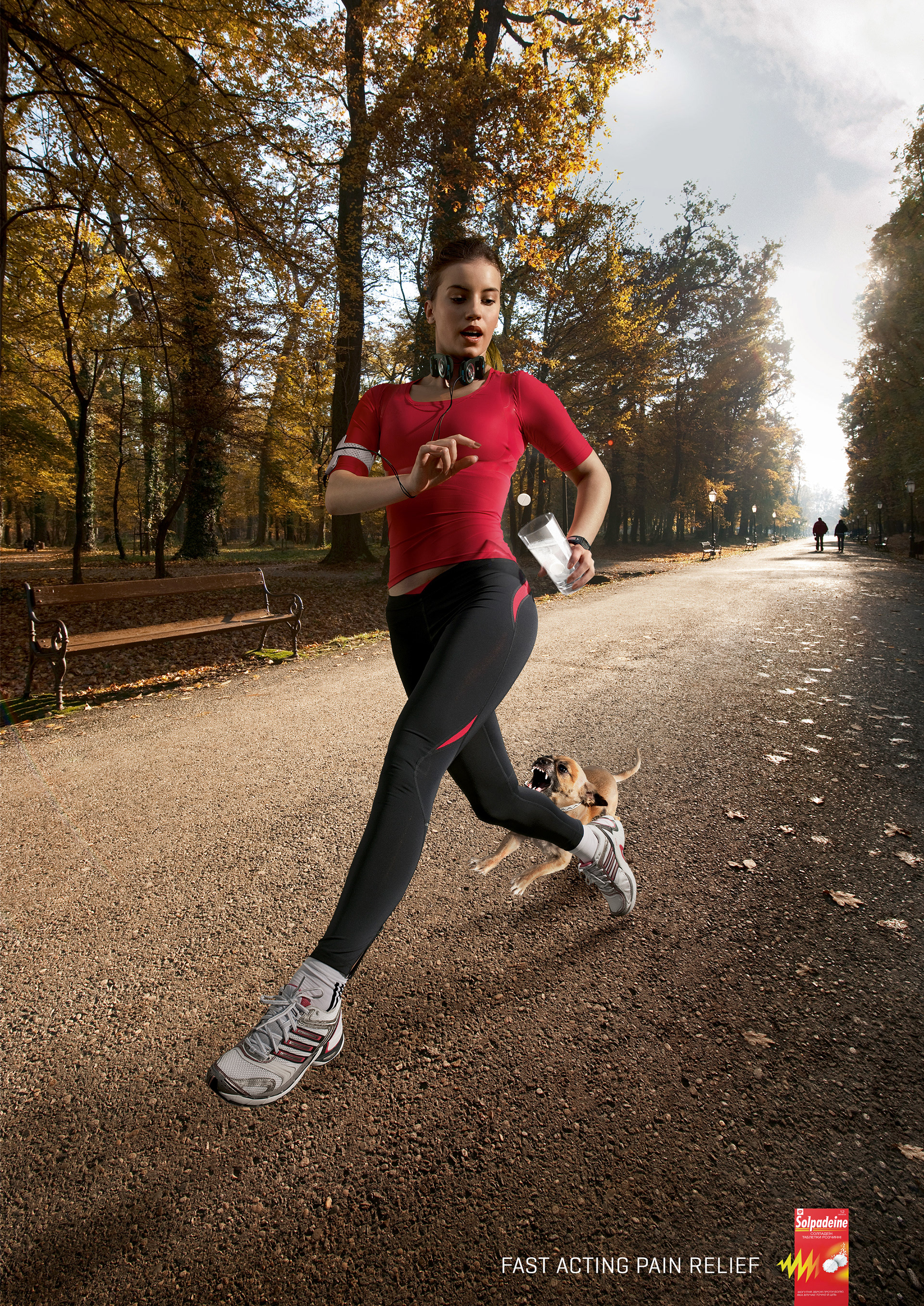 A print campaign to promote the fast acting effect of soluble Solpadeine pain remedy. To be honest I wish I hadn't done the jogger one. It's half as good as the other two. Oh well.